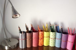 - You’re able to turn the paper rolls into an organizing tool as well. Save a bunch of them and get another piece of cardboard ( obviously not hard to find). You gonna have to glue them together and just use it to store make up or even your office supplies!